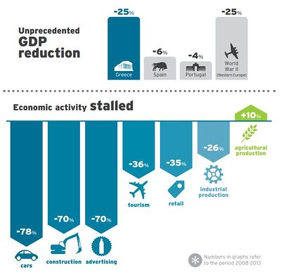 Η μελέτη του Ευρωπαϊκού Πανεπιστημιακού Ινστιτούτου, για τον Μάρτιο του 2014, δείχνει πως η Ελλάδα χάνει τα καλύτερα και τα πιο φωτεινά μυαλά της. Σύμφωνα με τη μελέτη, το 88% εκείνων που έχουν εγκαταλείψει τη χώρα είναι κάτοχοι πανεπιστημιακού πτυχίου, πάνω από το 60% διαθέτει μεταπτυχιακό τίτλο και το 11% εξ αυτών είναι κάτοχοι διδακτορικού διπλώματος. Επιπροσθέτως, η έκθεση του ΕΠΙ δείχνει πως το 79% εκείνων που έφυγαν από την Ελλάδα κατά τη διάρκεια της κρίσης, εργάζονταν, αλλά είτε δεν έβλεπαν κανένα μέλλον στην Ελλάδα (το 50%), είτε δεν είχαν επαγγελματικές ευκαιρίες (25%).