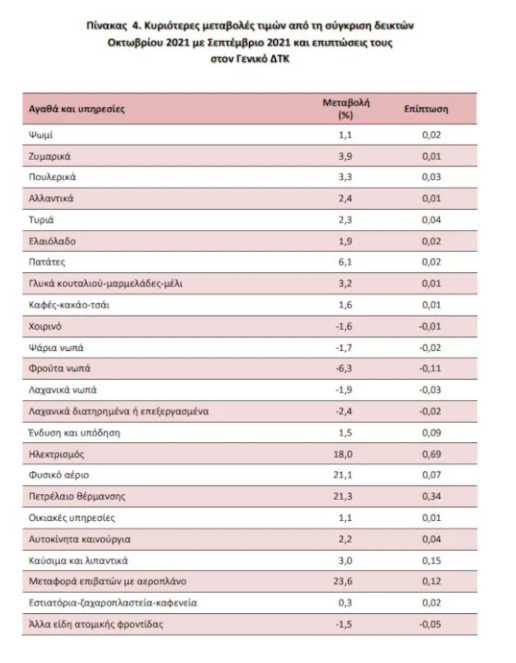 Πέρα και πίσω από το γενικό δείκτη τιμών, που σημείωσε άνοδο 3,4% σε σύγκριση με τον περσινό Οκτώβριο, τα επιμέρους στοιχεία είναι αυτά που σοκάρουν. Αναμφίβολα, η αύξηση κατά 133% του φυσικού αερίου και κατά 18,9% του ηλεκτρικού ρεύματος, τραβάνε την προσοχή.