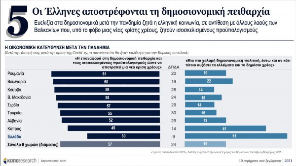 Στην τελευταία της έκθεση για το 2021, η Κάπα Research ξεχωρίζει το νέο σύστημα αξιών που νοηματοδοτεί τη ζωή των Ελλήνων, τη νέα γενιά που δεν υποκύπτει στις απανωτές κρίσεις, τη σύγκρουση εμβολιασμένων και ανεμβολίαστων, το περιβάλλον και την κλιματική αλλαγή, την αποστροφή των Ελλήνων προς τη δημοσιονομική πειθαρχία, τη στήριξη των επιχειρήσεων εν μέσω πανδημίας, τα ελληνοτουρκικά, το κοινωνικό φαινόμενο του bullying στην εργασία, τα 20 χρόνια των ΚΕΠ αλλά και τις αλλαγές στον ευρύτερο χώρο της Κεντροαριστεράς: